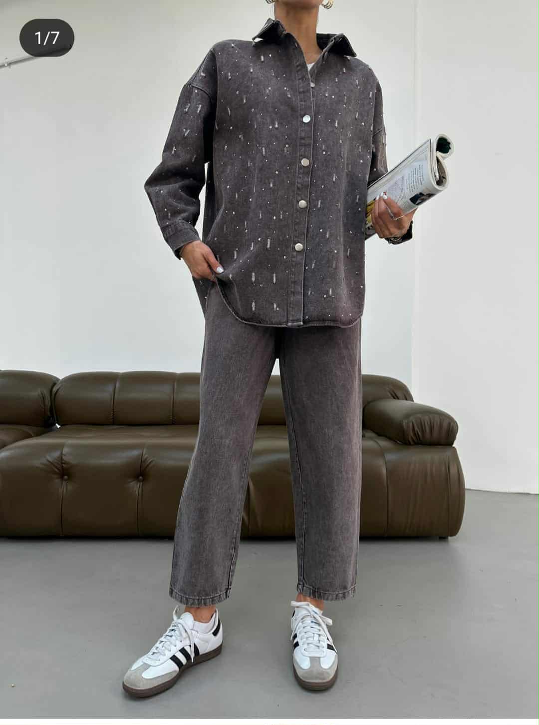 Gray suede suit