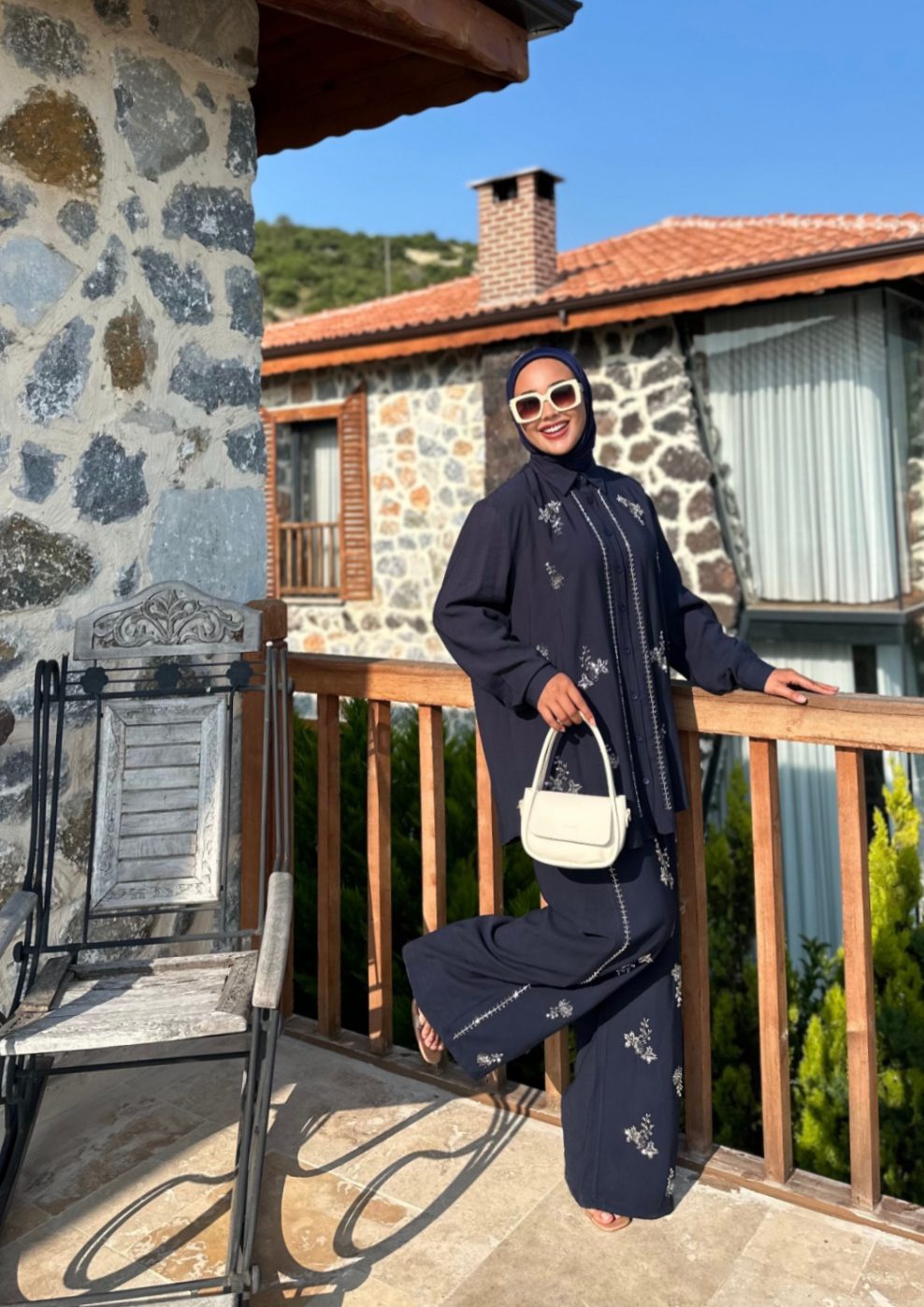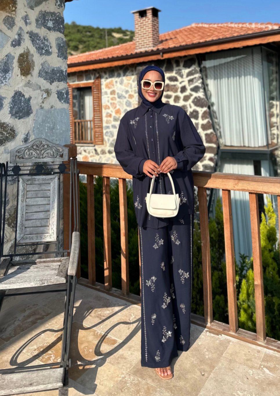 Navy embroidered suit